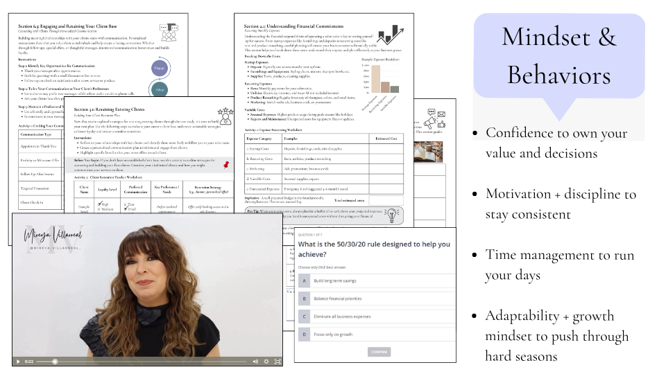 "Entrepreneurship in the beauty industry isn’t just about independence—it’s about building a career that aligns with your values, dreams, and talents. This course is here to help you transition from a chair to a suite with confidence, strategy, and the tools to succeed." – Mireya Villarreal, Founder & CEO